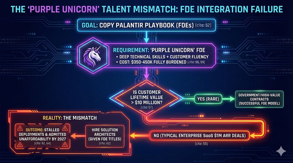 The result is a “purple unicorn” problem. The job postings say FDE. The job descriptions demand someone who can architect data pipelines, navigate enterprise politics, translate between technical and business stakeholders, and ship production code under pressure. That person exists—maybe 10,000 of them globally. The companies posting these roles are competing for a talent pool that can’t scale to meet demand.